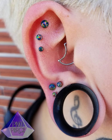Curation projects are some of my favorite things to do! From ASTM F136 titanium to genuine 14kt/18kt gold to genuine VS1 diamonds and gemstones, there's something for everyone. The best part? You don't have to start off with new piercings, I can assist to curate with existing work to best suite your personality and your vision. Take a look below at some of the projects I've helped become a reality.